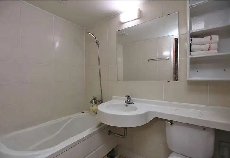 욕실에 따로 욕조가 있어 물을 받아 목욕을 할 수 있다. 아파트에서 많이 볼 수 있는 욕실 구조로 되어 있는 게 특징!