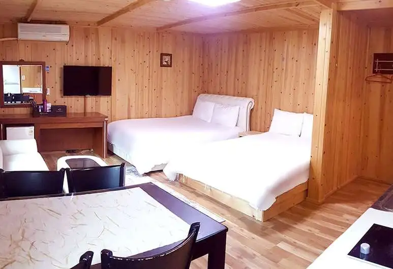 문리버 펜션의 특징은 단연코 거실이라고 할 수 있다! 거실이 아주 넓어 여러 가족이 단체로 놀러 온 경우에도 문제없다. 게다가 나무로 되어 있어 친환경적인 느낌이 물씬 나는 곳이다. 보기만 해도 자연 속에 들어온 것 같은 느낌이 팍팍 든다.