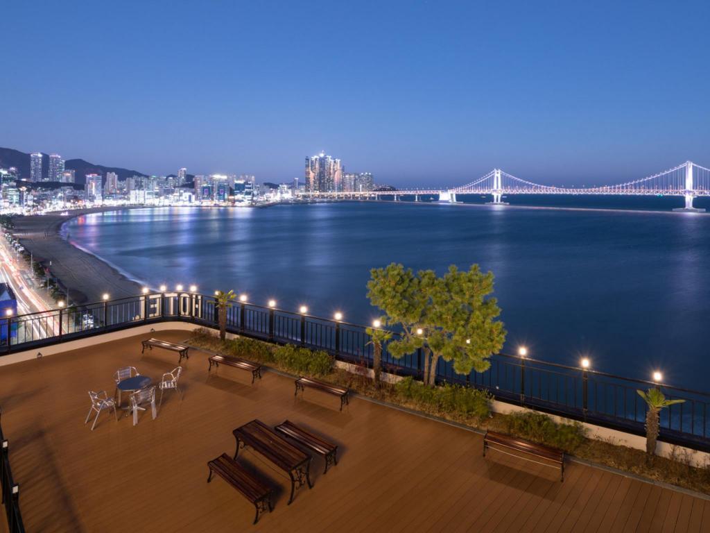 부대 시설로는 라운지와 비즈니스 코너, 루프탑 테라스를 갖췄다. 가장 핫플레이스는 바로 루프탑! 탁 트인 광안대교 전망은 물론이고 밤에는 인스타 감성 넘치는 조명으로 사진 찍기 좋다.