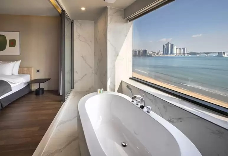 광안대교 전망을 조금 더 특별하게 느끼고 싶다면 반신욕은 어떨까. 커다란 통창 바로 앞에 있는 욕조에서 로맨틱하게 즐겨보자. 간단한 안주와 와인을 준비해 가는 것도 추천한다. 단, 배달 음식은 호텔에서 금지하고 있으니 참고!