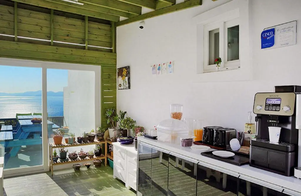 유럽식 조식이 준비되어있으며, 빵/시리얼/주스/커피 등이 준비되어 있다. 오션뷰를 바라보며 조식을 먹을 수 있어서, 조식 한 입~ 풍경 한 입~ 더 배부른 시간이 될 것이다. 전객실 조식이 모두 포함되어 있다.
