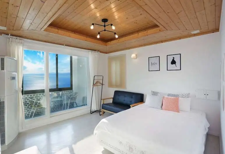 전객실 오션뷰를 자랑하는 블루그라드 펜션! 객실 내 침구류 상태가 깨끗해서 만족했다는 후기가 아주 많다~ 바닷가 옆에 있는 펜션이지만 침구류가 습기 차지 않고 아주 뽀송했다는 의견이 많았다.