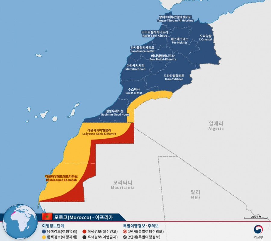 모로코는 매력적인 여행지지만 외교부에서 남색경보, 여행유의를 내린 지역으로 치안이 썩 좋은 편은 아니다. 특히 관광지와 대도시에서는 강도와 절도 범죄가 빈번한 곳으로 새벽이나 늦은 밤에는 외출을 자제하는게 좋다. 단독으로 여행하는 여성을 대상으로 캣콜링이나 불쾌한 상황을 만드는 경우가 많으니 동행과 함께 여행하거나, 지나친 친절이나 접근은 철저히 무시하는 것이 가장 좋은 예방법.