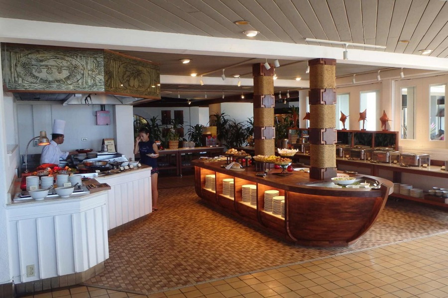 조식은 바다가 보이는 레스토랑 코코넛 테라스에서 뷔페식으로 제공된다. 체크인 카운터 맞은편이 레스토랑이다. 동서양 메뉴가 고루 갖춰져 있어, 손이 가는 음식이 많다. 갖가지 신기한 열대 과일도 있으니, 도전하는 재미가 있다.