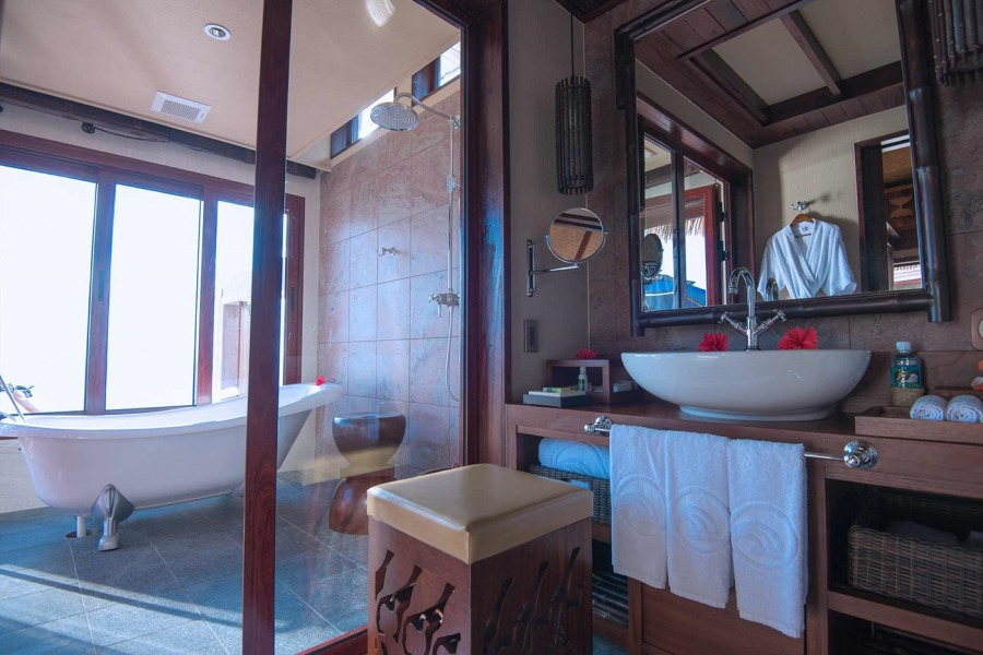 물 바로 위에 자리 잡은 워터 방갈로는 완벽한 휴양을 원하는 여행객에게 인기가 높다. 킹사이즈 베드와 에어컨, TV, 미니바, 바다 전망의 욕조, 더블 싱크대, 샤워시설, 선베드 등을 갖췄다.