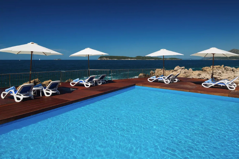 야외 테라스에서 아름다운 전경을 감상할 수 있는 호텔 아리스톤의 객실. 호텔 아리스톤의 넓은 객실은 모던한 인테리어와 포인트 있는 컬러감이 산뜻해 커플들에게도 인기 있다. 해변을 전망으로 하는 객실을 예약하실 경우, 따듯한 햇살과 함께 아름다운 아드리안 해의 모습을 전망으로 아침을 맞을 수 있다. 호텔 앞에서 6번 버스를 타면 두브로브니크 올드 타운까지 한 번에 갈 수 있으며, 신혼부부를 위한 특별한 스위트룸을 제공하고 있어 다양한 타입의 여행객들에게 인기 있다.