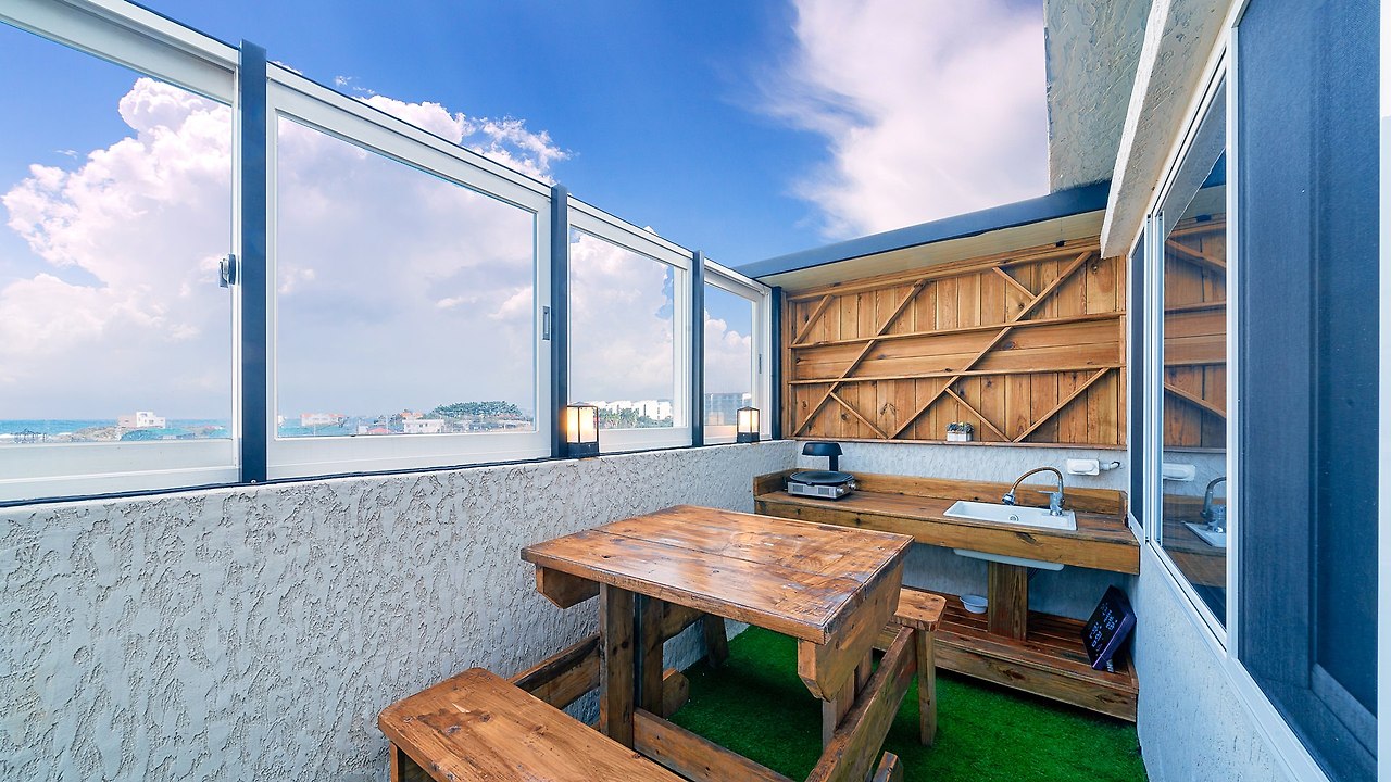각 객실마다 테라스가 있는데, 테라스에서 바라보는 전망이 너무 아름다우니 이곳에서 인생샷 여러 장 건질 수 있을 것이다. 그리고 사전 예약 시 테라스에서 바베큐도 이용 가능하다. 숯 이용 금액은 테이블 당 2만 원이 부과된다.