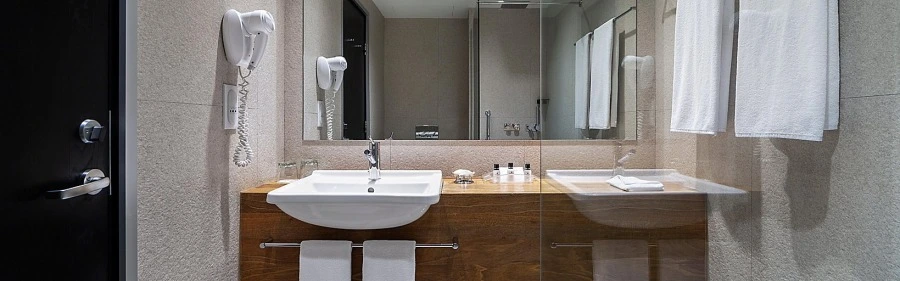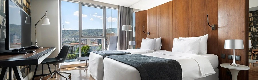 혼자 여행하거나 커플 여행이 아닌 이상 어디서 묵든 트윈 룸이 가장 편하다. 트빌리시 메리어트는 Shota Rustaveli 라는 트빌리시 주요 애비뉴에 위치해 어느 객실에서든 예쁜 길거리를 바라볼 수 있다. 혹시 하나의 침대를 사용하고 싶다면 넉넉한 킹사이즈 룸으로 선택할 수 있다. 유럽 여행할 때 꼭 필요한 객실 슬리퍼가 준비되어 있다. 욕실에는 메이크업을 좀 더 쉽게 할 수 있도록 조명이 달린 거울이 있으니 외출 시 편하게 이용해보자.