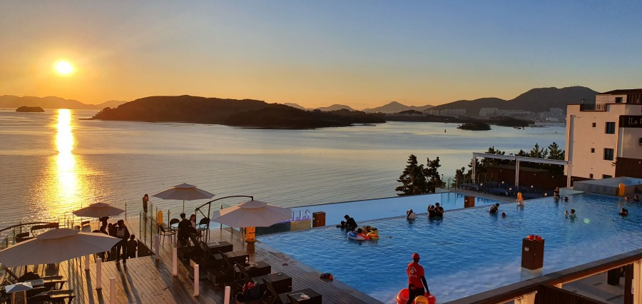 국내 최초의 계단식 인피니티 수영장은 해외를 연상시키는 이국적인 매력을 가졌다. 낮과 밤이 모두 아름다운 이곳에선 좋다 이 말도 부족할지도. 또한 풀사이드 노천탕 및 사우나도 오션뷰로 즐길 수 있고, 편의점, 커피숍까지 편의시설도 갖춰져 있다.