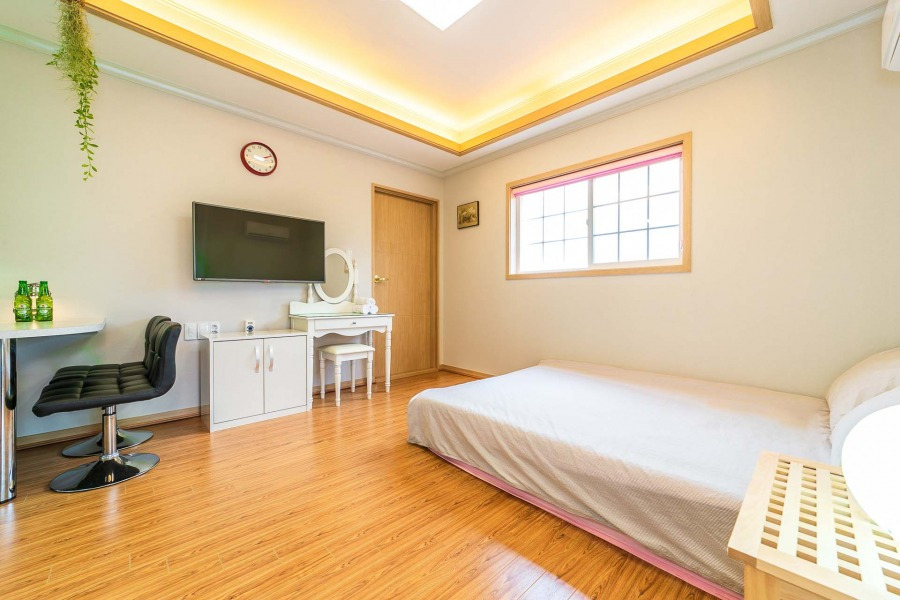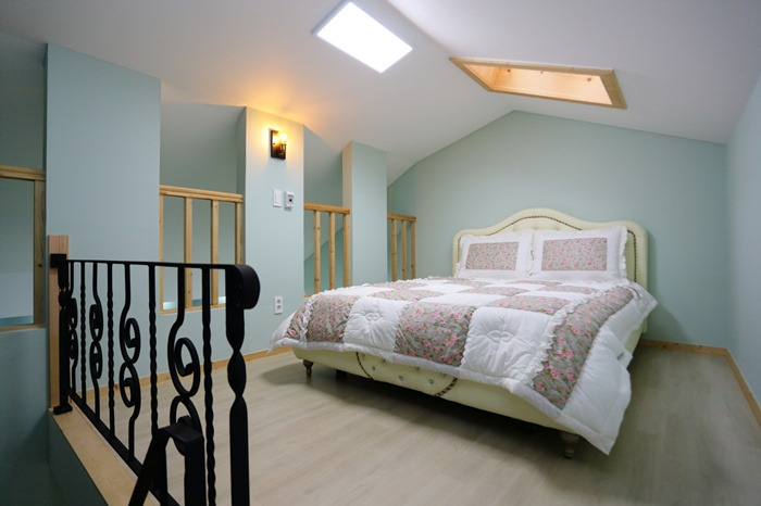 복층은 아늑한 침실로 꾸며져 있는데, 이 공간의 하이라이트는 천창으로 아침이면 눈부신 햇살을, 저녁에는 별을 감상할 수 있는 로맨틱한 공간이 된다. 체크인은 15시부터 가능하며 체크아웃은 11시까지이다.