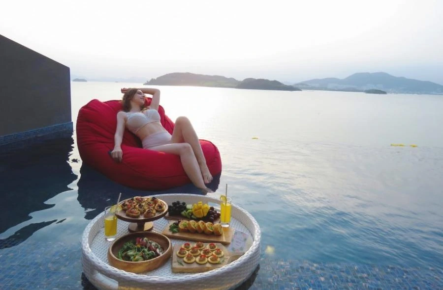 조식을 매일 아침 9시쯤 객실로 배달되며 플로팅 조식을 즐길 수 있게 예쁘게 셋팅되어 온다. 플로팅 조식을 즐기기에 시간이 빠듯할 경우 플로팅 선셋으로도 즐길 수 있다.
