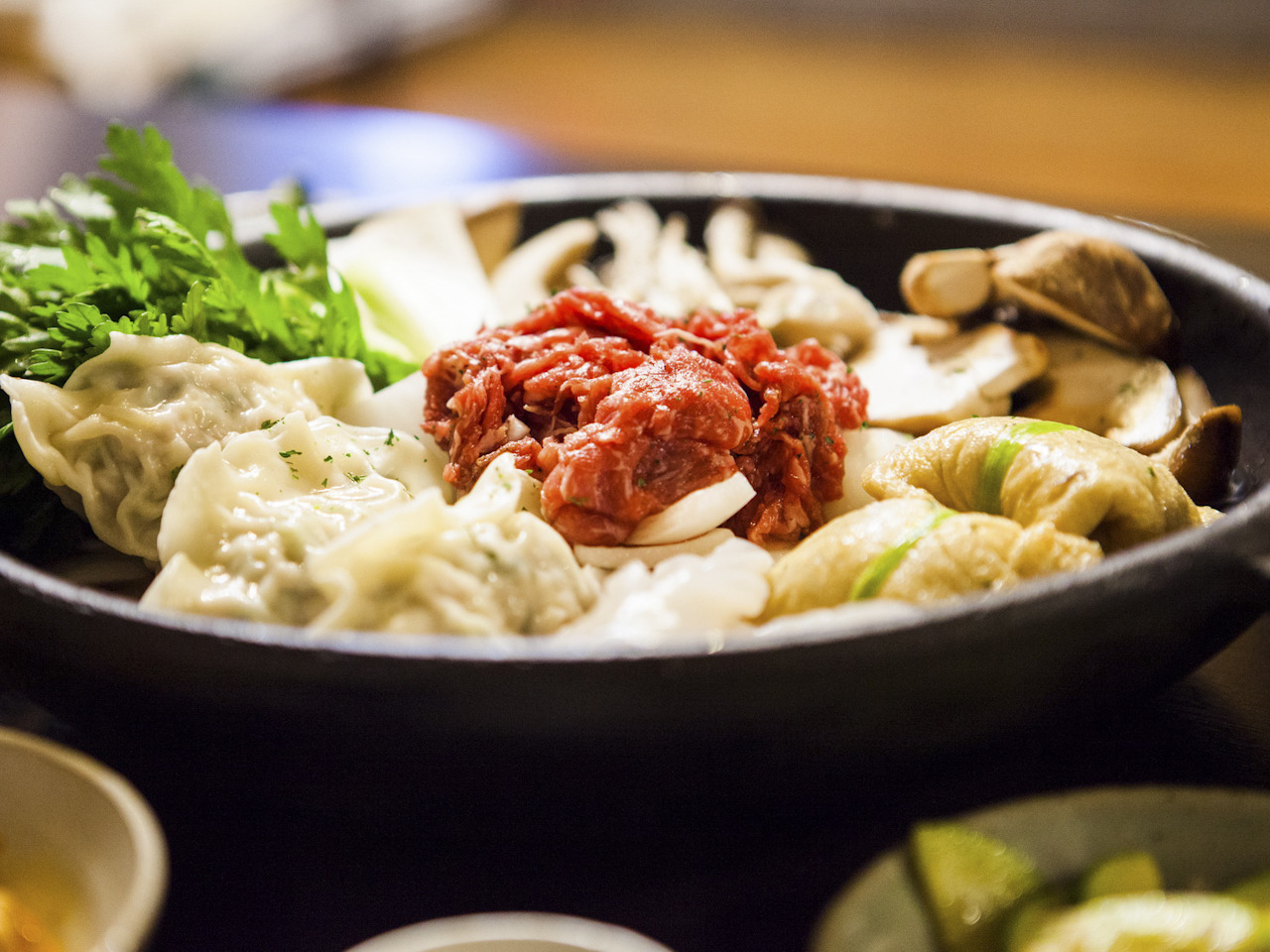 여주 프리미엄 아울렛 근처 맛집, 그늘집은 불고기와 어복쟁반으로 유명하다. 어복쟁반은 평안도 음식으로 갖가지 고기편육과 채소류를 푸짐하게 담은 뒤, 여러 사람이 둘러 앉아 육수를 부어가면서 먹는 전골류 음식이다. 집집마다 어복쟁반에 들어가는 재료들이 조금씩 달라지는데, 그늘집에서는 새우전, 편육, 버섯전, 깻잎전, 유부주머니, 소고기 등을 넣어 맛을 낸 구수한 육수로 인기가 좋다. 그늘집 역시 감성식탁과 같이 MSG가 첨가되지 않았고, 직접 텃밭에서 재배한 무농약 유기농 채소로 만들어진 건강식이다! 이번 꽃샘추위는 여주 그늘집에서 뜨끈한 어복쟁반 한 그릇, 어떠한가?