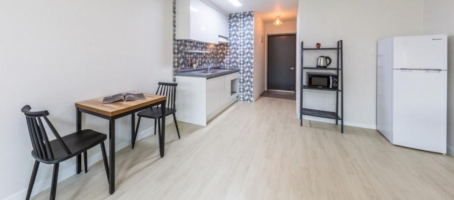 또, 7~8월을 제외한 달에는 20%할인 된 비수기 요금으로 저렴하게 이용이 가능하니, 더욱 가성비 있는 봄 여행을 준비해 보자. 원룸식이지만 기본적인 어메니티는 모두 제공하고 있다. TV, 침대, 화장대, 에어컨, 냉장고, 식탁은 기본이고, 전자렌지, 주방기구, 식기류 등, 주방 관련 어메니티도 준비되어있다.