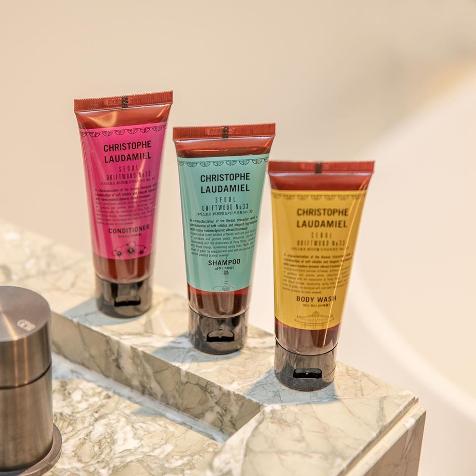 안다즈 서울 강남의 어메니티는 세계적인 조향사 크리스토프 로다미엘의 손길이 닿은 ‘드리프트우드 No. 33’ 제품이다. 젊고 역동적인 호텔의 이미지와 어울리는 패키지 디자인은 남산타워, 무궁화, 한옥 등 서울을 상징하는 일러스트가 더해져 더욱 특별함이 느껴진자. 세상에 단 하나뿐인 안다즈 서울의 시그니처 향을 경험해볼 수 있다.