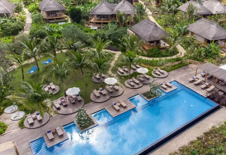 탄자니아 주리 잔지바르 리조트는 2019년에 지어진 따끈따끈한 고급 리조트로 고급스러운 트로피칼 스타일의 이 리조트는 바다를 앞에 두고 초록 빛과 푸른 빛의 자연을 몸소 만끽할 수 있다. 1박에 최소 $410 라고 한다