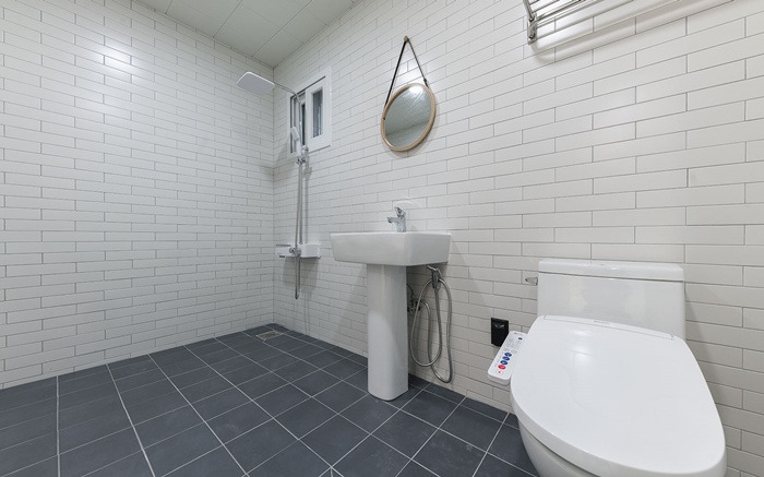 욕실은 깔끔한 편이며, 어메니티는 샴푸와 린스, 바디워시, 바디로션, 칫솔과 치약 등 없는 것 없이 꼼꼼히 구비되어 있다.