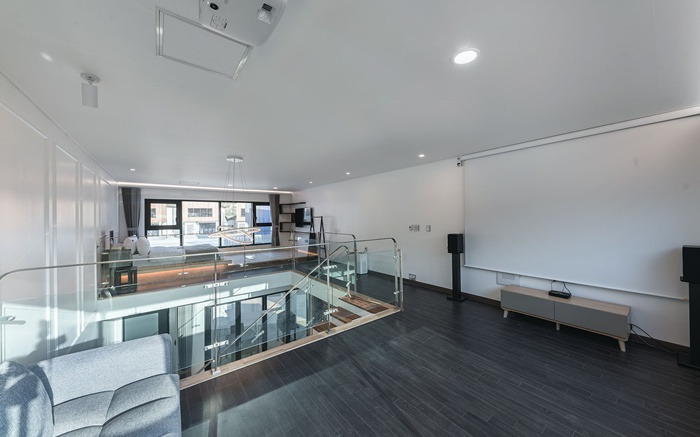 세인트21펜션 내에는 홈시어터 시스템이 있어 좀 더 생생하게 영화 관람을 할 수 있다. 빔프로젝터와 120인치 스크린, 고출력 스피커까지! 가족들과 도란도란 즐거운 시간을 보낼 수 있다.