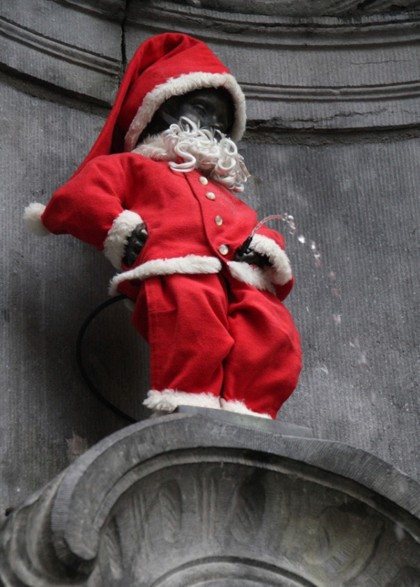 브뤼셀, 아니 벨기에를 대표하는 관광 스팟인 오줌싸개 동상. 예상보다 훨씬 작은 동상 크기에 실망할 수도 있다. 어쩌면 못 찾을 수도 있다.. 그럼에도 불구하고 이 소년이 특별한 이유는 특별한 이슈가 있을 때마다 옷을 갈아입기 때문에 있다. 예를 들어 산타 복장이나, 엘비스 프레슬리의 복장이랄까?