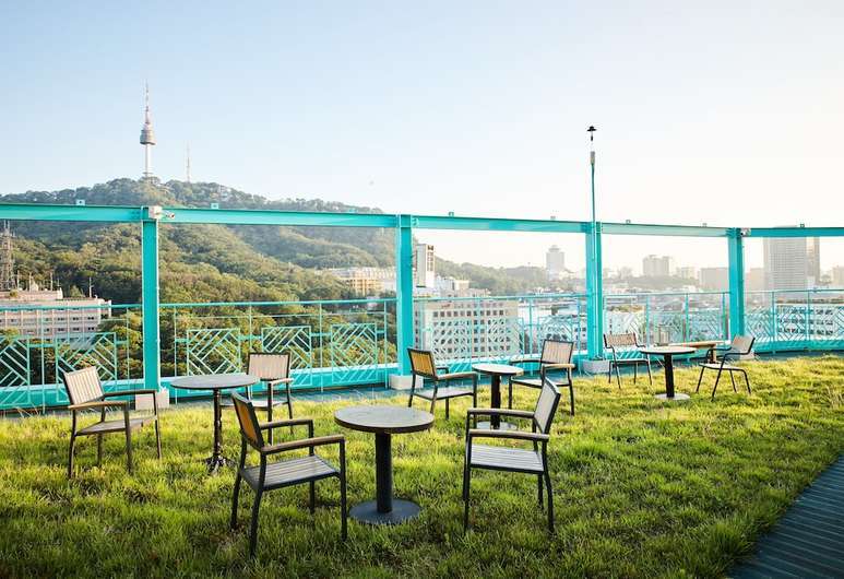 옥상 테라스와 호텔 조식 레스토랑에서 바라보는 뷰는 끝장~ 남산 타워를 바라볼 수 있는 야경 명소다. 맑고, 날씨 좋은 날 루프탑 테라스에서 시원한 맥주 한 잔 해보면 어떨까.
