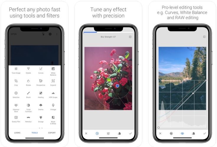구글이 배포한 사진 보정의 끝판왕 스냅시드는 포토그래퍼들도 자주 사용하는 편집 어플이다. 처음엔 어렵다고 느낄 수 있지만 익숙해지면 헤어 나올 수 없다. 가장 기본적으로 사용하는 기능은 ‘거친 필름‘이며, X01~X04가 두루두루 쓰기 좋다!