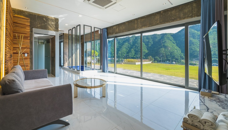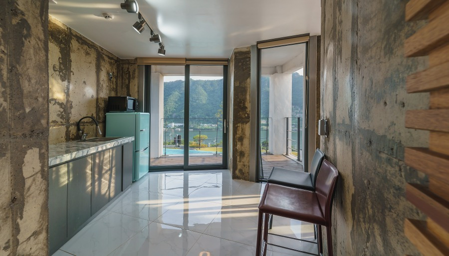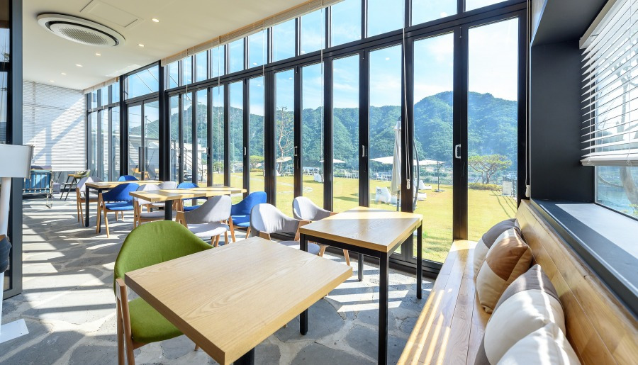 강과 산에 둘러싸인 펜션은, 객실이 한 건물에 모여 있지 않고 언덕을 따라 차례로 배치돼 있다. 덕분에 어디에서든 아름다운 북한강 전망을 즐길 수 있다. 전 객실에 통창과 테라스를 갖추어 최대한 만끽할 수 있다.