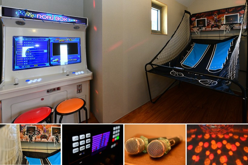 가평 두밀두밀 펜션의 doupoolex 객실은 다양한 액티비티를 즐길 수 있는 객실이다. 액티비티 전용공간인 복층에는 노래방 기기를 비롯해 오락기, 미니 당구대 등이 설치되어 있어 신나는 시간을 보낼 수 있다