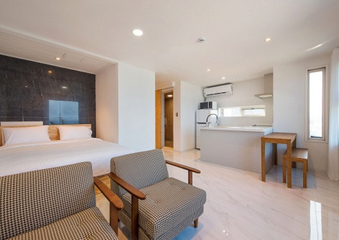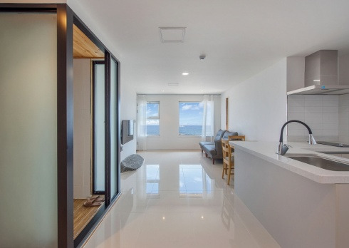 속초 바닷가 앞에 위치한 모레브 펜션은 스튜디오부터 가족침실까지 다양하게 구비되어 있는 숙소 모레브 펜션! 하얀색의 바닦과 벽의 인테리어가 더욱 객실을 시원하고 넓어보이게 해주고, 포인트로 원목 가구가 배치되어 감성을 자극하는 모레브 펜션. 하얀색의 배경이 사진찍기 딱이다. 분리형 원룸 객실에는 넓은 거실과 침실이 구분되어 있어 더욱 깔끔하고, 원목 인테리어의 욕실이 색다른 편안함을 준다! 각 객실에는 미니 주방이 구비되어 있어, 간단한 취사가 가능하다.