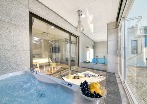 각 객실에는 프라이빗하게 스파와 수영을 즐길 수 있는 발코니가 마련되어 있다. 아이들과 함께 즐기기에도 좋은 사이즈의 스파와 수영장에는 튜브와 비치볼도 구비되어 있어 좋다. 또 조용한 산책길이 주변에 위치해 숙소 주변에 위치해 있어 신선한 공기와 함께 하루를 시작하기에 좋다.
