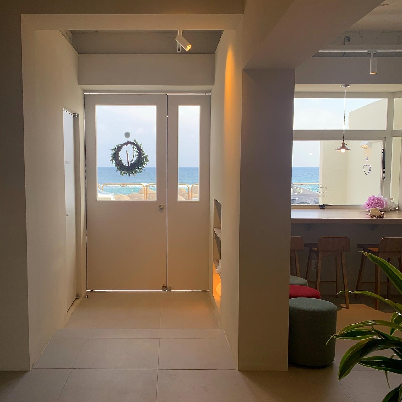 하얀색의 인테리어와 창 밖으로 보이는 푸르른 바다가 너무나 잘 어우러져 마치 책 속의 일러스터 삽화같은 느낌을 주는 속초의 감성 카페 ‘커피해요’. 가정집을 개조해 만든듯한 동네의 자그마한 카페, 입구에는 벤치가 놓여져있어 사진 스팟으로 인기가 만점이다.