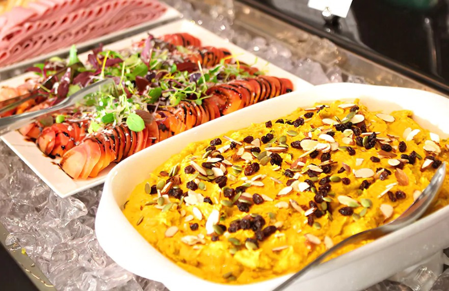 조식은 뷔페이며 사전 예약하면 저렴한 가격으로 먹을 수 있다. 아침 6시 30분부터 9시 30분까지 운영하며 10시에 마감이다. 메뉴가 다양한 건 아니지만, 스크램블, 치즈, 햄, 과일, 씨리얼, 돈까스, 제육, 각종 한식 등을 먹을 수 있다. 가격에 비해 가성비 좋은 조식이다.
