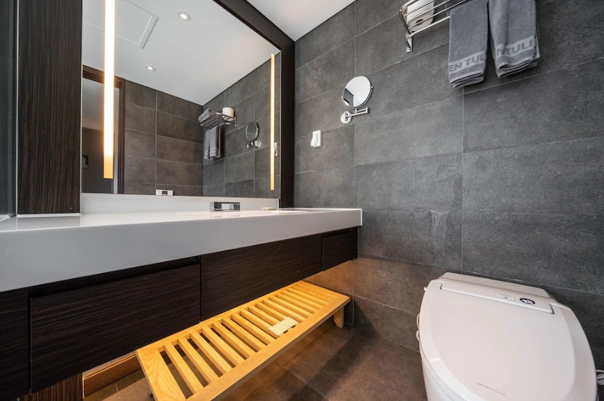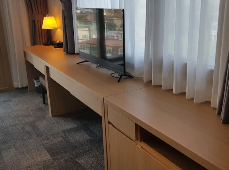 객실은 시내뷰와 바다뷰가 있다. 바다뷰는 인기 많아서 어쩔 수 없이 시내 전망 객실을 선택는데 방이 좁다는 생각보다 쾌적하다는 느낌이 먼저 들었다. 매트리스도 너무 딱딱하지도, 푹신하지도 않게 적당해서 편하게 누울 수 있다. 객실에는 전기 포트, 컵, 물 3병이 제공된다. 옷장이 있어서 짐 정리하기 나쁘지 않고 카펫도 깔끔하고, 슬리퍼 신고 다닐 수 있어서 쾌적하게 머물 수 있다. 수건은 넉넉하게 제공되고, 드라이기, 샴푸 겸 린스 일체형과 바디워시가 있다. 치약과 칫솔은 제공되지 않는다. 따뜻한 물도 잘 나오고 수압도 괜찮다. 청소 상태도 좋아서 쾌적하게 이용할 수 있다.