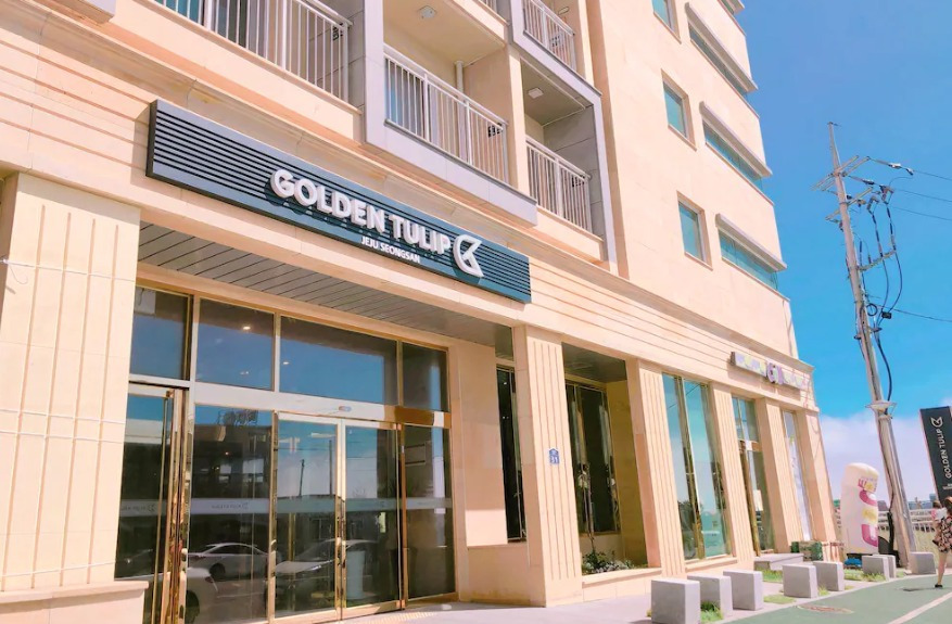 호텔 체크인은 15시이고, 체크아웃은 11시이다. 1층에 편의점이 있어서 필요한 물건이 있으시다면 바로 구매할 수 있다. 객실에서 성산일출봉을 볼 수 있어서 골든튤립 호텔에 머무시는 여행객이 많다.