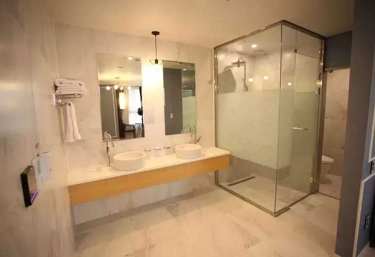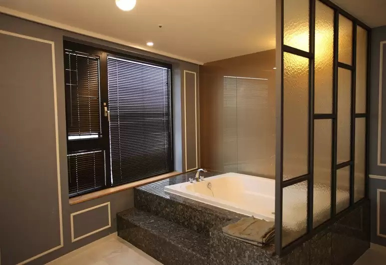 JK 블라썸은 재방문이 높은 호텔로도 유명한데, 거기에는 월풀 욕조가 한몫한다. 욕조 앞에 설치된 통창으로 한강 전망을 만끽하면서 스파를 즐길 수 있다. 단, 객실 바닥이 대리석이니 물이 튀었다면 미끄럼에 주의해야 한다.