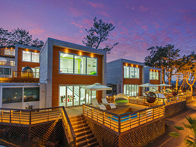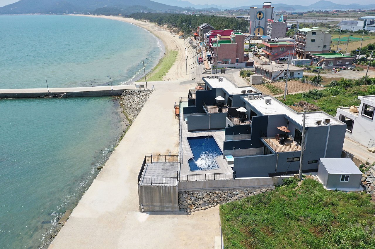 외관은 그레이 톤으로 차분한 느낌이 든다. 바닷가 바로 앞에 위치해서 예쁜 뷰를 바라보며 힐링 할 수 있어서 더욱 매력적이다.