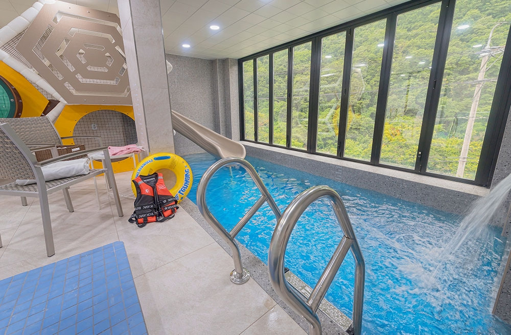 가족여행으로는 ‘키즈 풀빌라’ 객실을 추천한다. 최대 8명까지 수용 가능한 독채펜션으로 객실과 놀이공간이 분리되어 있기 때문에 아이들이 신나게 놀 수 있다. 객실에 월풀과 테라스가 마련되어 바베큐와 물놀이도 모두 프라이빗하게 즐길 수 있다.