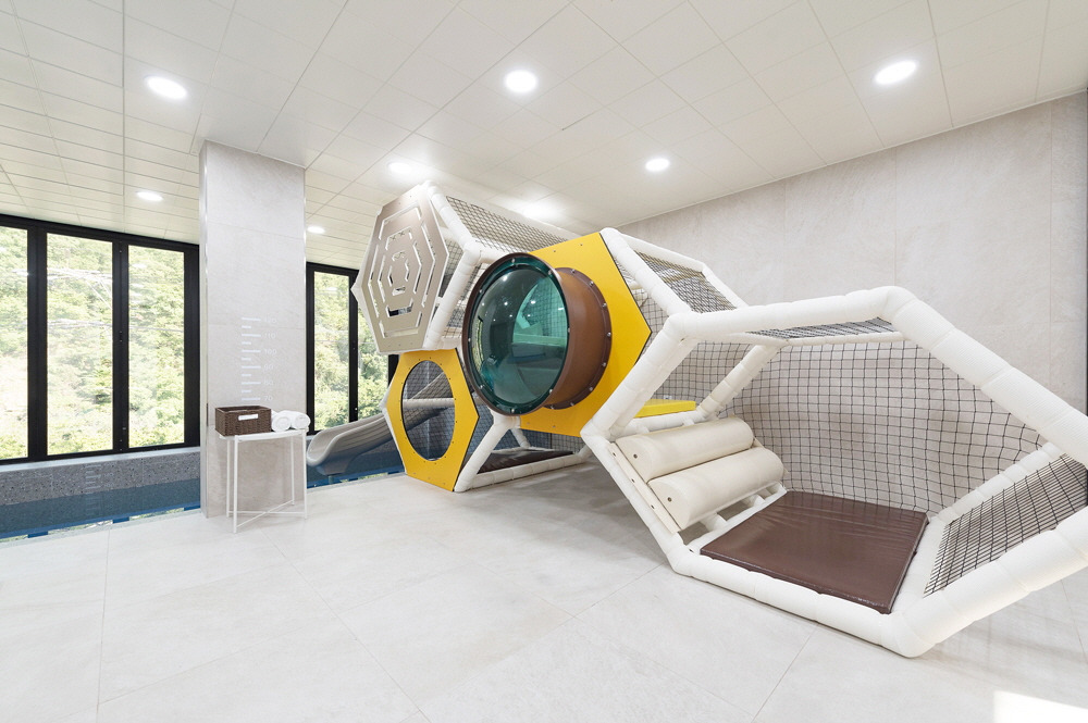 비클래시의 객실은 침실과 놀이공간이 분리되어 있는데, 특히 키즈카페와 워터파크를 축소 시킨듯한 놀이공간과 미끄럼틀을 타고 온수풀장까지 내려올 수 있어서 어린이 손님들에게 인기가 좋다.