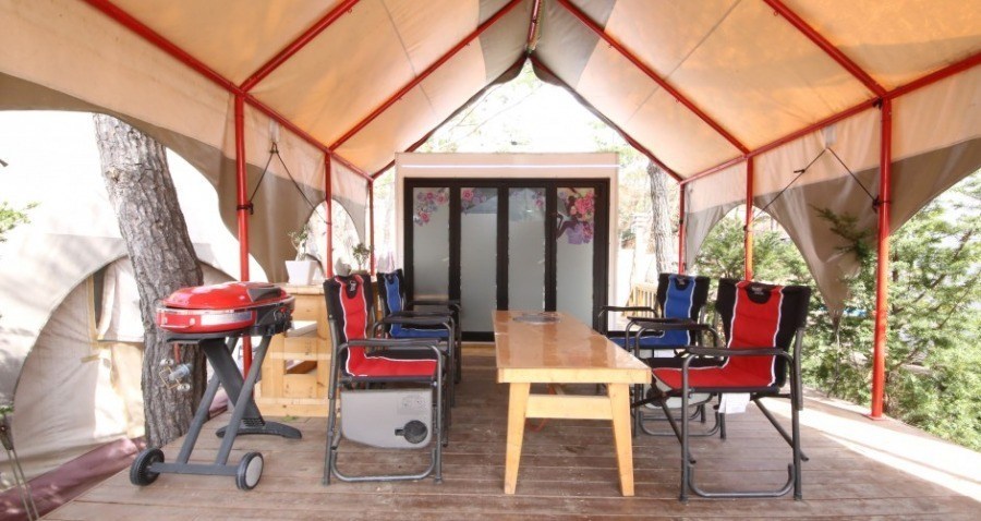 카라반에서는 날씨에 따라 실내·외에서 프라이빗하게 바비큐를 즐길 수 있다. 단독 테라스 덕분이다. 부족하다면 간이 주방을 이용해보자. 가스레인지(인덕션), 냉장고, 전기밥솥, 전자레인지, 커피포트 등이 완비돼 있다.