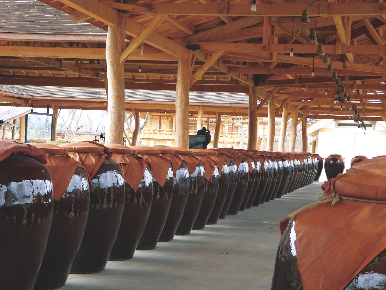 산사원은 전통 술 박물관으로 400여 개의 증류주 항아리와 누각, 양조 기계, 유물 전시관 등 볼거리가 다양하다. 전통 술 시음도 할 수 있다.
