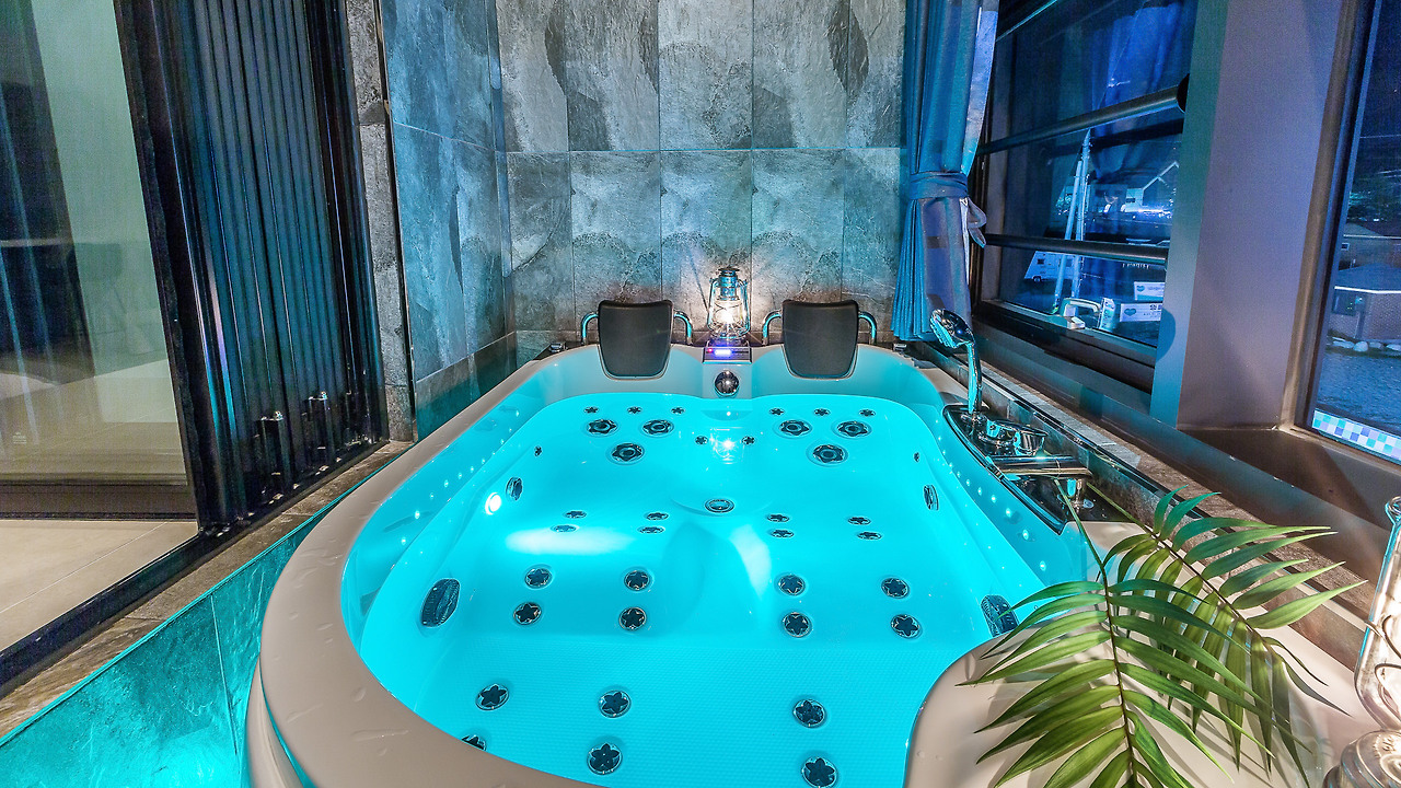 부대 시설로는 전 객실에 프라이빗 스파와 바비큐 테라스가 마련돼 있다. 바비큐는 원적외선 그릴을 이용해 안전하다. 스파는 47개의 제트펌프를 갖춰 따뜻한 산소 방울 마사지도 가능하다.