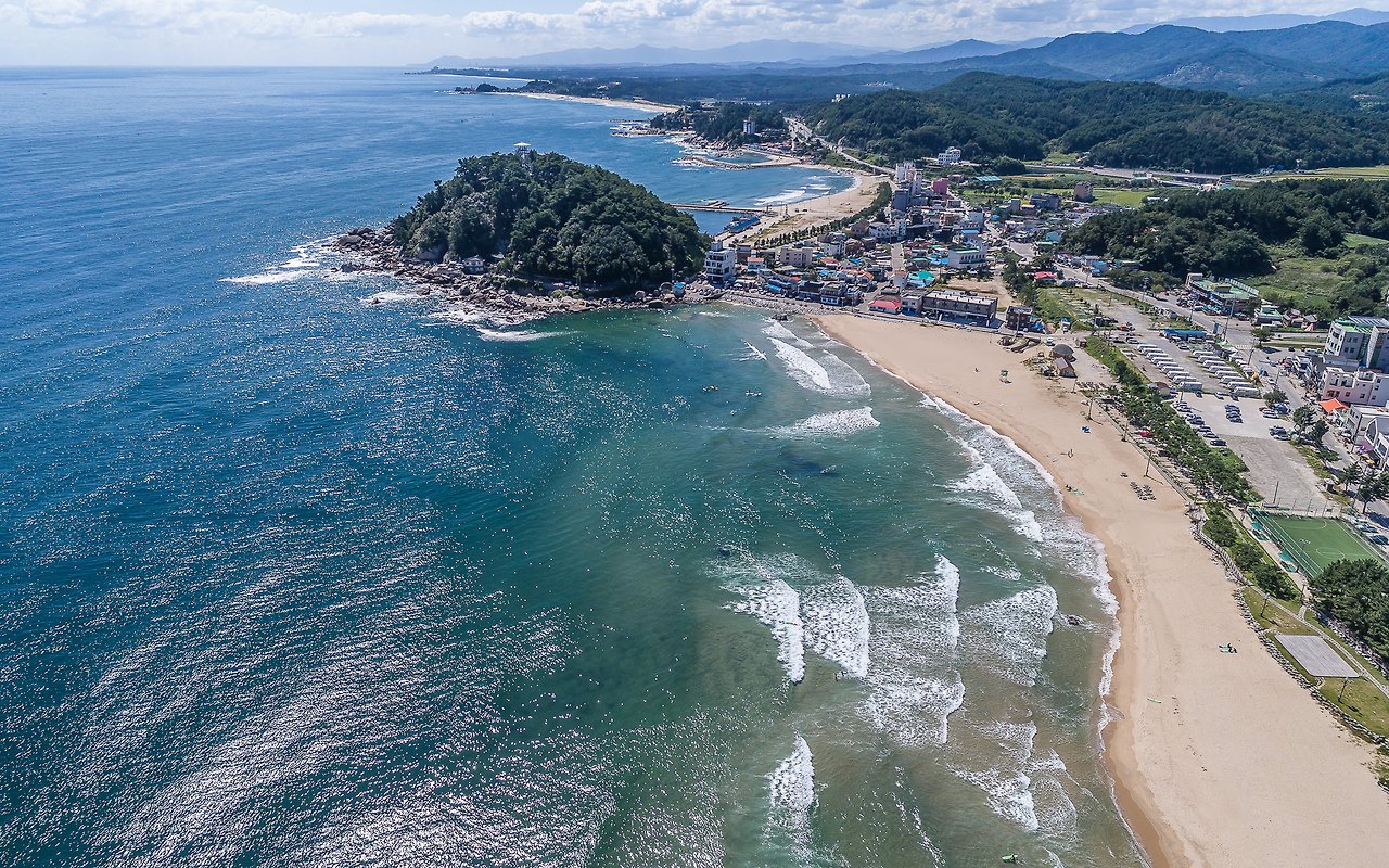 숙소에서 걸어서 1분이면 충분한 죽도 해수욕장! 2km에 이르는 깨끗한 백사장과 우리나라에서 보기 드문 에메랄드 빛깔의 맑은 바닷물을 자랑하는데, 수심은 얕고 파도는 높아 서퍼들의 천국으로 불린다.