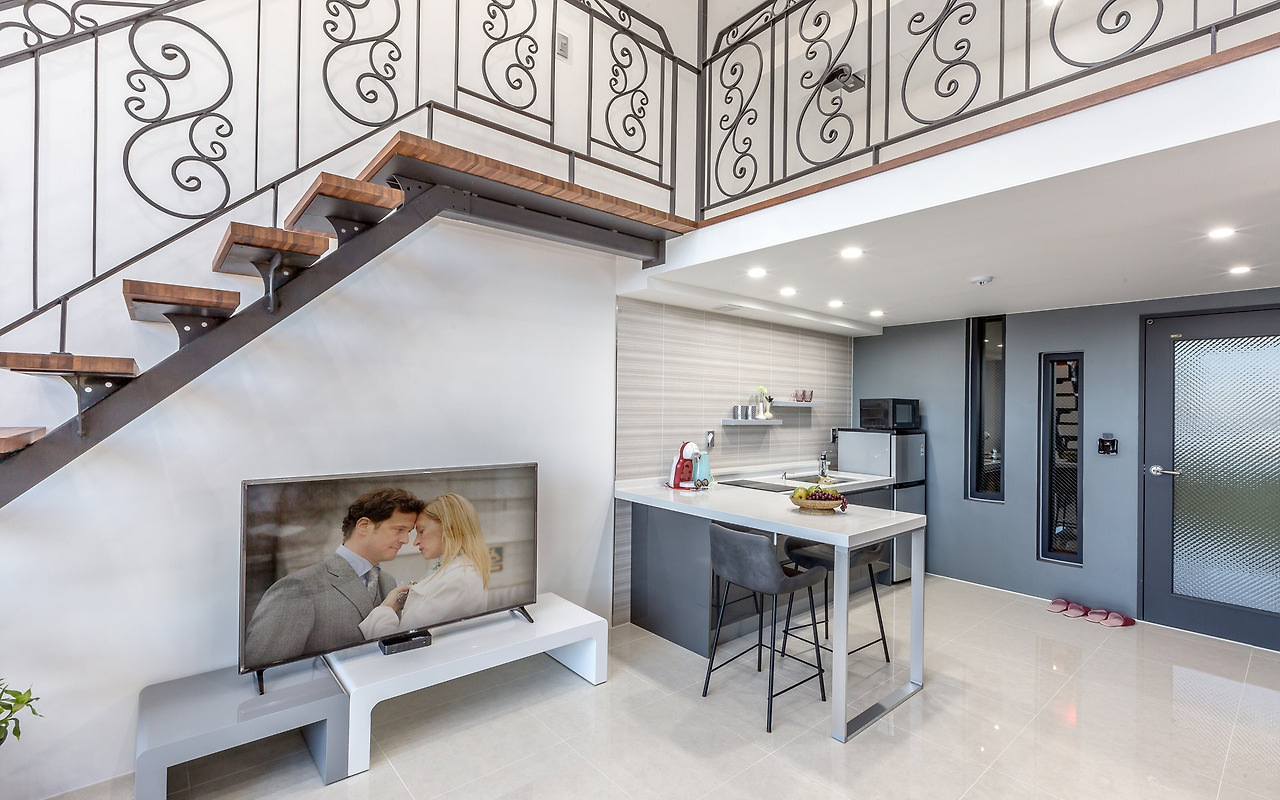 항상 갖고 싶었지만, 장바구니에만 담아두고 망설였던 그 아이! 빔 프로젝터가 전 객실에 설치돼 있다. 셋톱박스가 함께 제공된다. TV를 봐도 좋고, 보시고 싶은 영상이 있다면 USB에 담아와도 좋다.
