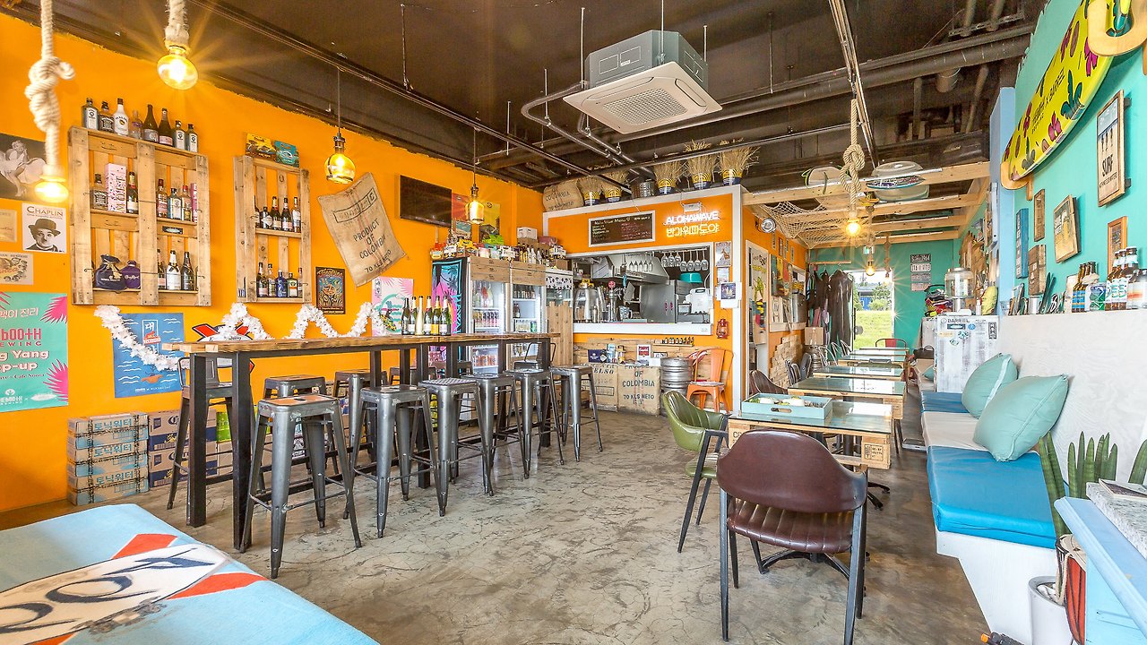 여행 가면 맛집부터 찾아야 하는 법! 펜션 1층에 양양 맛집으로 소문난 알로하 웨이브가 자리 잡고 있다. 이국적인 분위기로 인스타에서 인기가 높다. 추천 메뉴는 함박 스테이크와 시원한 맥주!