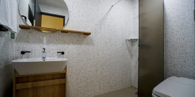 칫솔, 치약, 샴푸, 컨디셔너, 샤워젤을 욕실 기본 어메니티로 제공하며, 드라이기, 면도기, 샤워캡, 머리끈 등의 편의 용품도 꼼꼼하게 갖추고 있다.