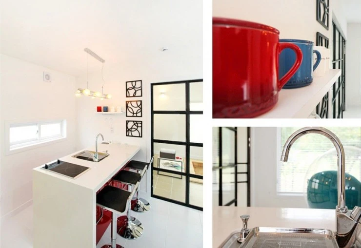 주방은 전기밥솥과 에어프라이어, 식기 및 조리도구가 잘 갖춰져 있다. 맛있게 만든 식사를 테라스에서 상쾌한 공기와 정원을 바라보며 즐겨 보자. 어느 해외 휴양지 못지않을 것이다.