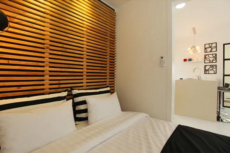 커플이나 가족 단위의 여행객들에게 추천하는 원룸형 객실 204호이다. TV, 에어컨이 비치되어 있고, 테이블 세트도 있어서 도란도란 이야기 나누기 좋은 곳이다.