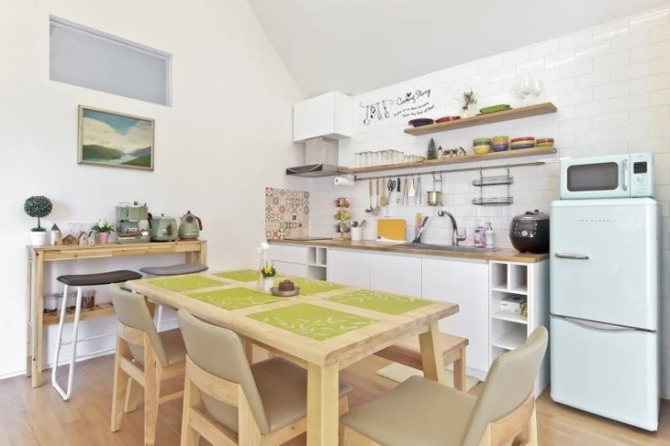 풀빌라답게 객실 간이주방도 내 집 부럽지 않게 잘 갖췄다. 냉장고와 전자레인지, 커피 머신, 토스트기, 전기 압력밥솥, 각종 식기류가 구비돼 있다. 유아용 식탁 의자도 준비되어 있다.