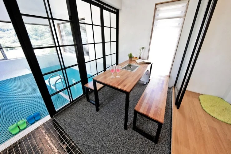 부대시설로 개별 실내 수영장과 바비큐 시설, 야외 공용 수영장, 정원 등을 갖췄다. 실내 풀 크기는 2m*6m*1.2m로, 물놀이 용품도 무료로 대여할 수 있다. 마찬가지로 원적외선 전기 그릴도 무료로 이용 가능하다.