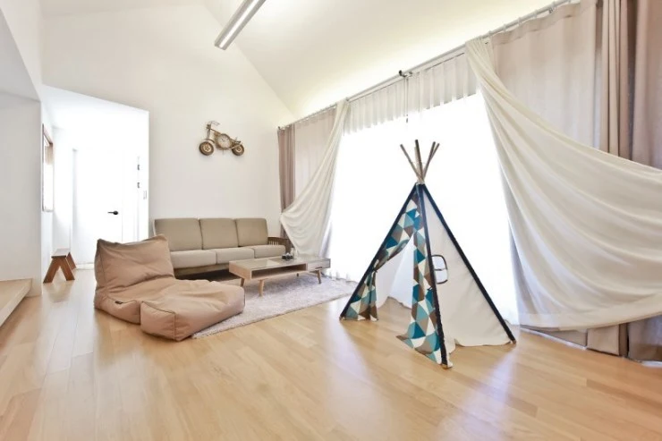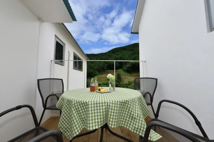 청정한 가평 자연을 배경으로 독채형 객실이 한 폭의 그림처럼 지어져 있다. 객실 간 일정한 거리를 두고 있어 사생활 보호도 된다. 인테리어는 내·외부 화이트 톤으로 맞춰 깔끔하고 안정적이다.