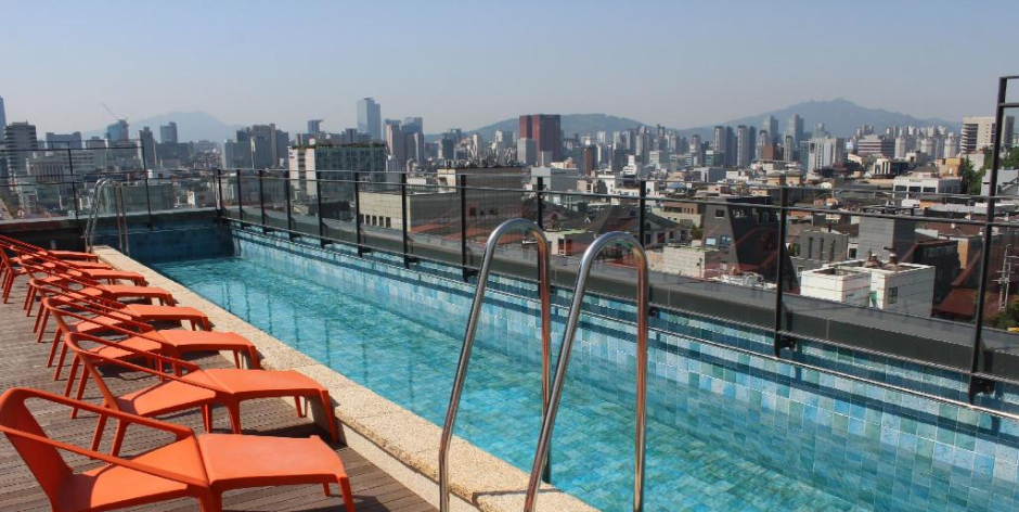 6월~9월까지는 19세 이상만 입장이 가능한 루프탑 풀장도 이용할 수 있다. 강남 시내와 한강까지도 보이는 루프탑뷰가 예쁜 곳이다. 이곳은 여름 이후에 이용할 수 있으니 참고!!