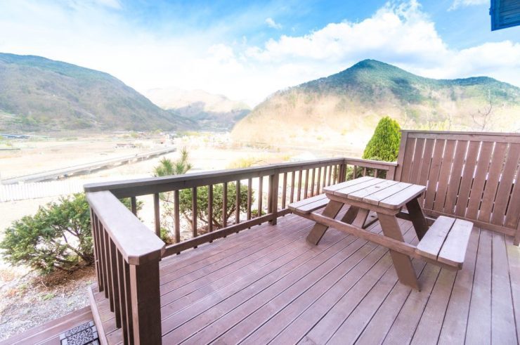 매화 객실은 4인용 객실로 커플이 넉넉하게 사용하기 좋은 곳이다. 가격대도 10만 원 미만으로 가성비가 매우 좋다. 깔끔한 화이트 톤에 우드가 더해져 따뜻한 느낌을 주며 개별 테라스가 있어 바비큐도 즐길 수 있다. 어메니티는 샴푸와 린스, 바디워시, 비누를 제공하고 있다.